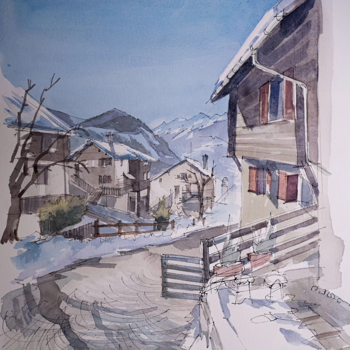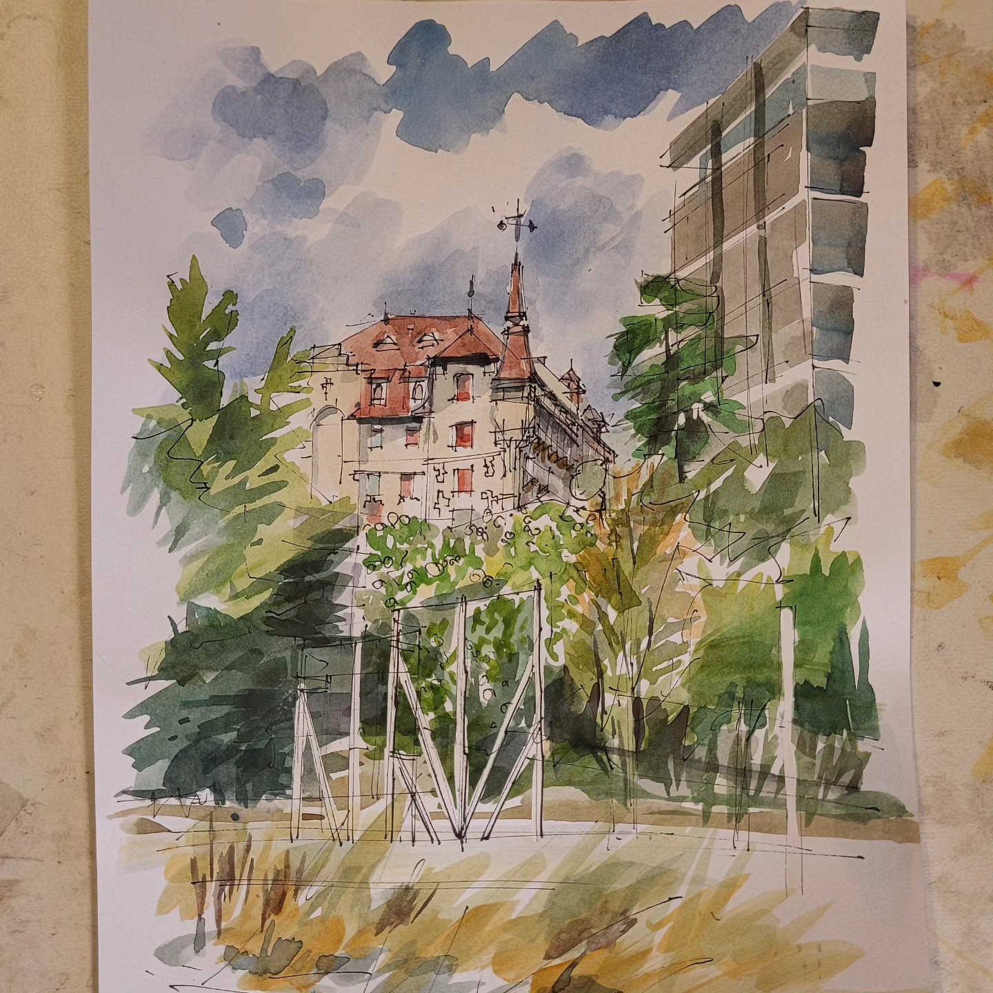 Dessins à l’aquarelle, sur place ou d’après photo.