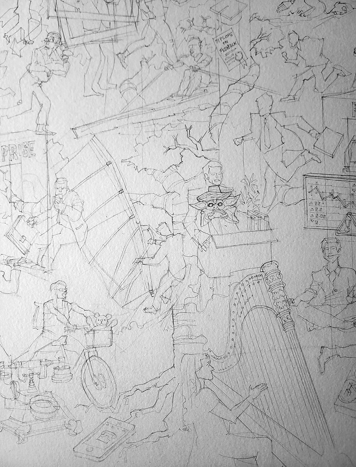 Réalisation de dessins illustrant un événement dans l’entreprise.
